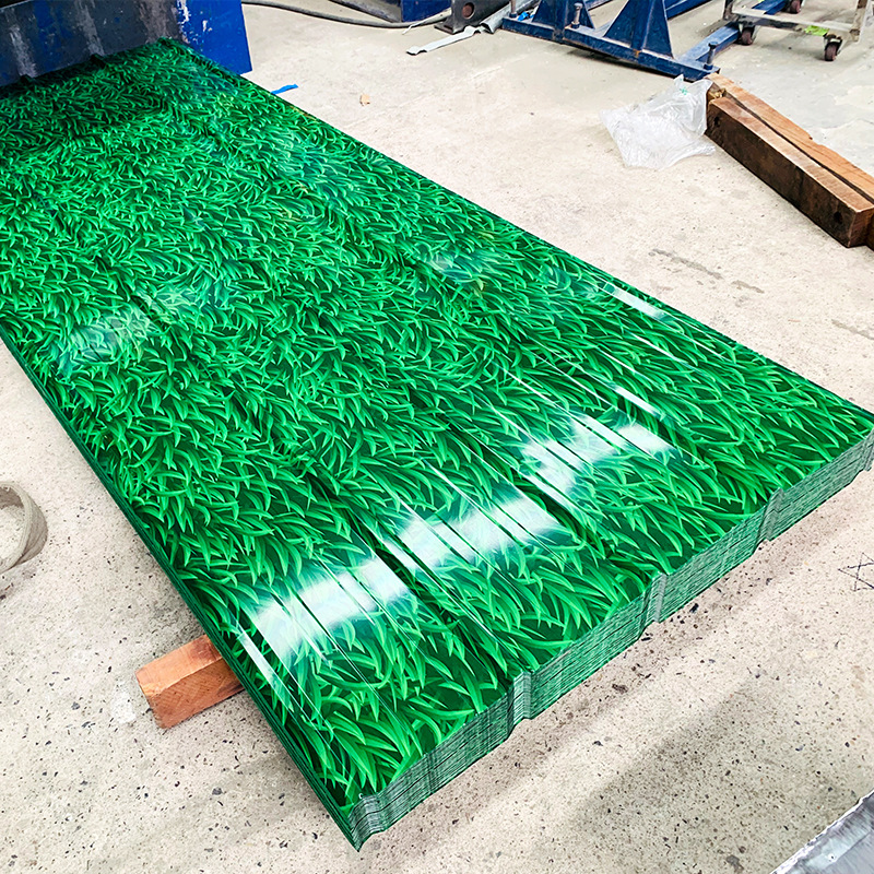 铁皮小草印花彩钢瓦压型板 840型900型彩涂瓦楞板 厂房屋顶用波浪瓦